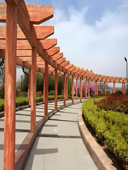 木制長廊具有自然、溫馨的質(zhì)感,能夠很好地融入自然環(huán)境,提升景觀的整體美感。木材的紋理和質(zhì)感也能增添歷史和文化底蘊(yùn)。